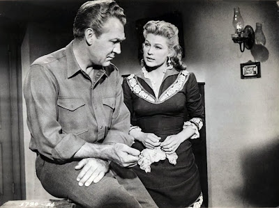 The usually affable Tucker rarely cracks a smile here; he’s properly authoritative in one of his better starring roles. Van Cleef is his most physically imposing adversary and shows us a full head of hair in his first scene. Hank Worden’s comic relief is especially welcome here given the tense, grim tone of the story. Jim Davis, who worked with Tucker frequently at Republic (they were antagonists in the also underrated CALIFORNIA PASSAGE), is also in top form, and there are few films that Mara Corday didn’t help during her brief screen career. Matter of fact, Corday’s presence alone should make this a cult item.