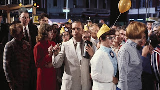 Satire, we’ve all heard countless times, is what closes on Saturday night. In this instance, satire sat unreleased for two years and then closed on Saturday night in 1971. I don’t buy the theory that it was too cynical to market for 1969 audiences: after all, PUTNEY SWOPE, MIDNIGHT COWBOY and EASY RIDER were all released successfully that year. Instead I think it was difficult to market due to the lack of box office names save for the then slumping Van Dyke, who was coming off a string of bombs both critically acclaimed (THE COMIC) and downright embarrassing (SOME KIND OF A NUT).Top billed Van Dyke seems a bit miscast as Eagle Rock’s pompous religious leader and the driving force behind the thirty day pledge. While it's easy to buy people falling asleep in his church, it isn't so convincing to see them dutifully falling in line behind him to sign the pledge, money notwithstanding. It was understandable why wife Scott was irritated with him, but 4,006 citizens being inspired or (especially) bullied by the Reverend? Bit of a stretch. Van Dyke is usually tasked with playing the increasingly insane situation straight and providing contrast to those crazies around him. At times, though, he's as manic as he was in WHAT A WAY TO GO!, uncharacteristically killing some laughs.