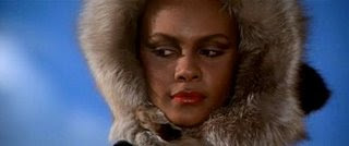 Dobson continued her highly successful modeling career, with ads for the likes of Revlon and Faberge (replacing Lola Falana as Tigress spokesperson in 1978), but her post-Cleo acting career was mainly limited to Amazonian sci-fi supporting roles in series like JASON OF STAR COMMAND and her swan song, the telefilm AMAZONS (appropriately enough) in 1984 for ABC. She left acting behind at that point, still stunning as ever, but no doubt frustrated over lack of opportunity and typecasting. Hollywood's myopia was once again our loss. There were occasional rumors that Ms. Dobson might be returning to the screen, but AMAZONS remained her swan song.