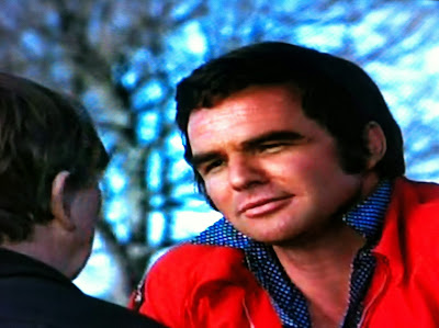It's Burt's W.W. who is by far the most well-rounded character, but his many interesting quirks are mostly touched on, with few fully explored. He idolizes Errol Flynn, surely thinking that Robin Hood himself would approve of the Southland Oil Service robberies. (Side note: Since DANCEKINGS is a Fox product, it's THE SUN ALSO RISES rather than Warner-era HOOD that Burt watches early and quotes later.) While Reynolds is a disgruntled former S.O.S. employee, no specific "breaking point" is ever identified, and his Korean War service (assuming he's truthful about that) is glossed over quickly after coming in handy in one scene. Charm and baffling with bullshit turn out to be his specialties, but Burt does show a chivalrous side when Van Dyke's honor seems threatened by a sequin-suited Beatty and also chooses the band he's grown fond of over the car he passionately loves.