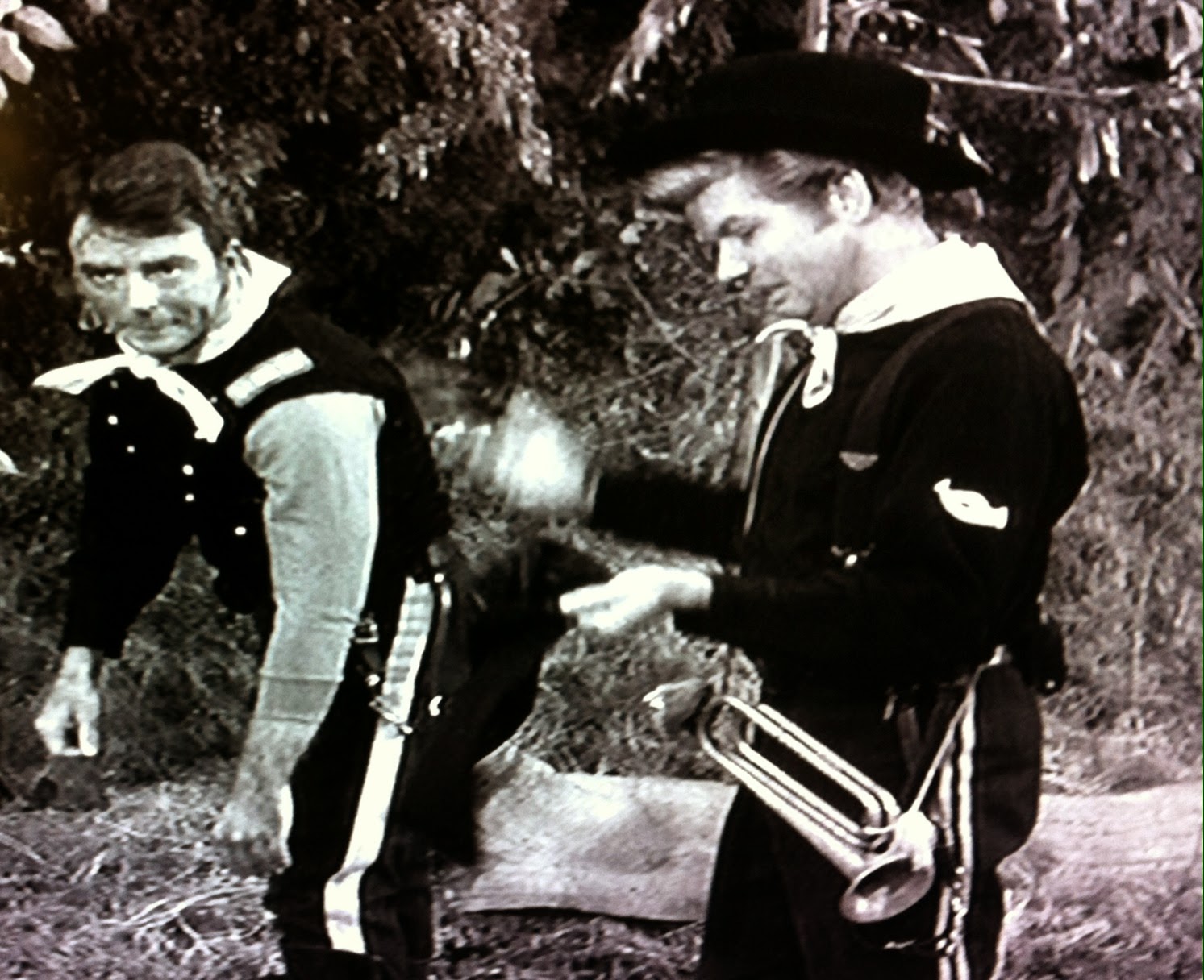 Back inside the fort, a scout from Fort Bravo informs the CO that the Secretary of War is on his way to give someone a medal! With no reason to believe anyone is due a reward for bravery, Parmenter instructs Dobbs to muster the men. While the Bugler has a heretofore unknown talent for mating calls, his ineptitude at cavalry signals remains intact.