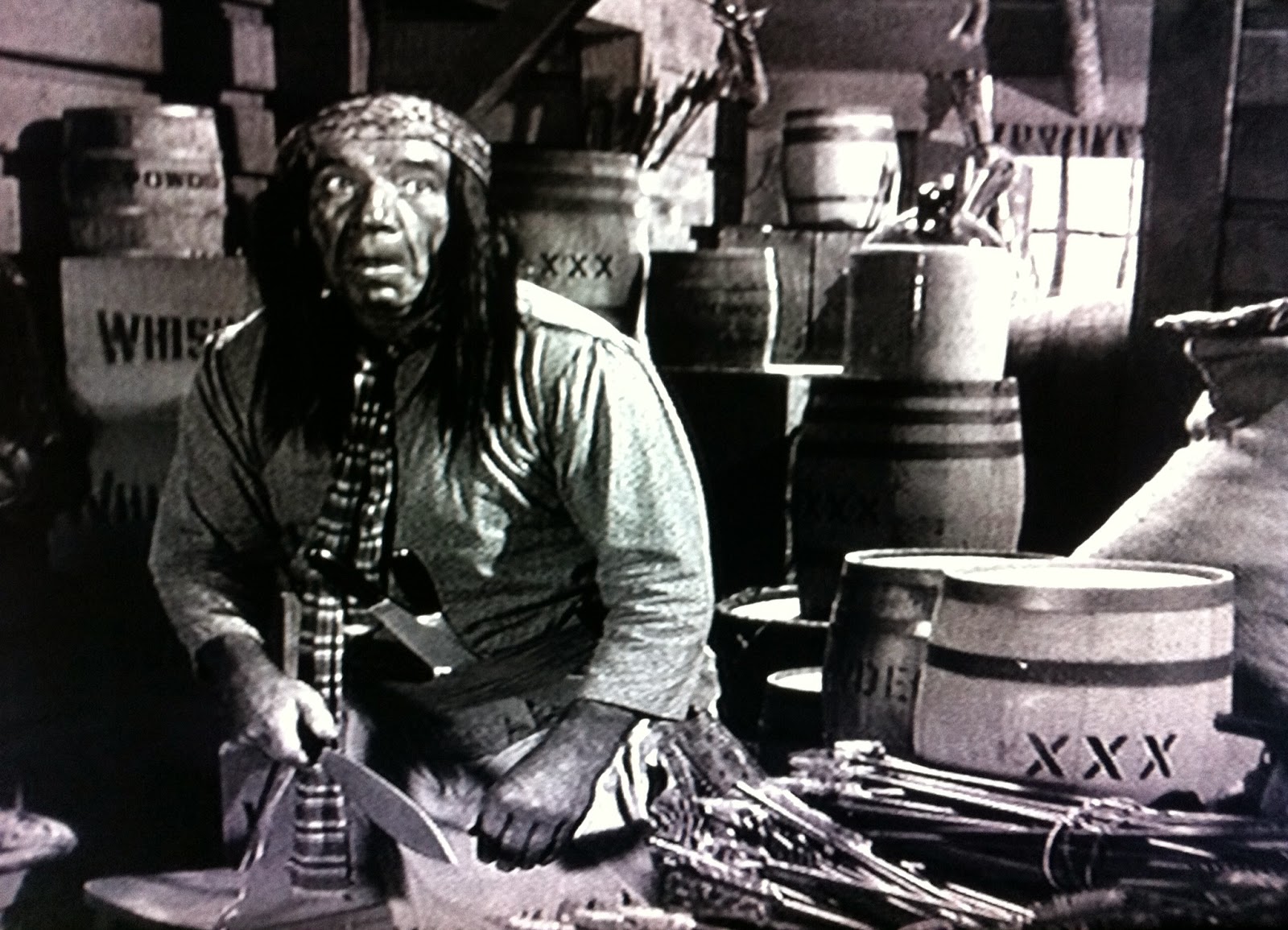 Firmly stating that the Corporal will make "a beautiful scalp", he's heads to the Fort to "put him out of business" and exits the frame with a war whoop. "My cousin, the Warrior. And his mother wanted him to become big Medicine Man!"