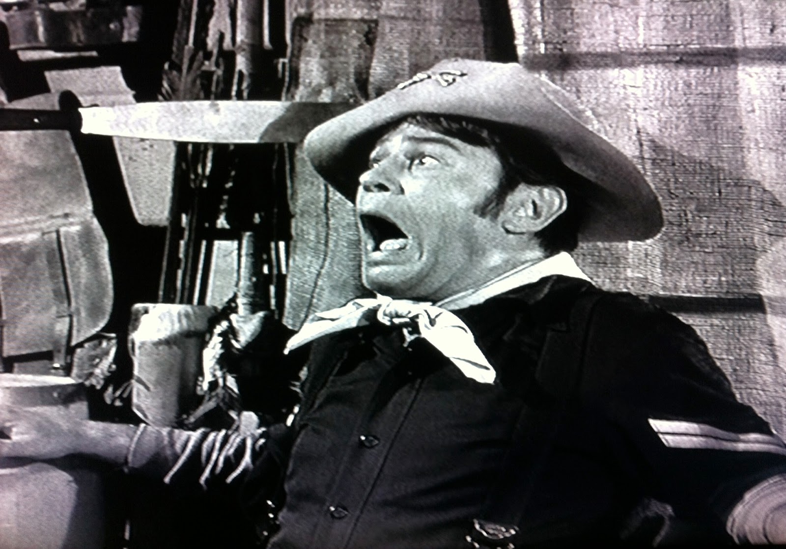In an episode full of rarities, here comes another one: kindly Captain Parmenter is angry. "This is your last chance. Will the guilty brave man please take one step forward!" No one does, so Wilton begins quizzing them one at a time. Starting with Duffy, who for once gets more than a couple of sentences into his Alamo story uninterrupted.