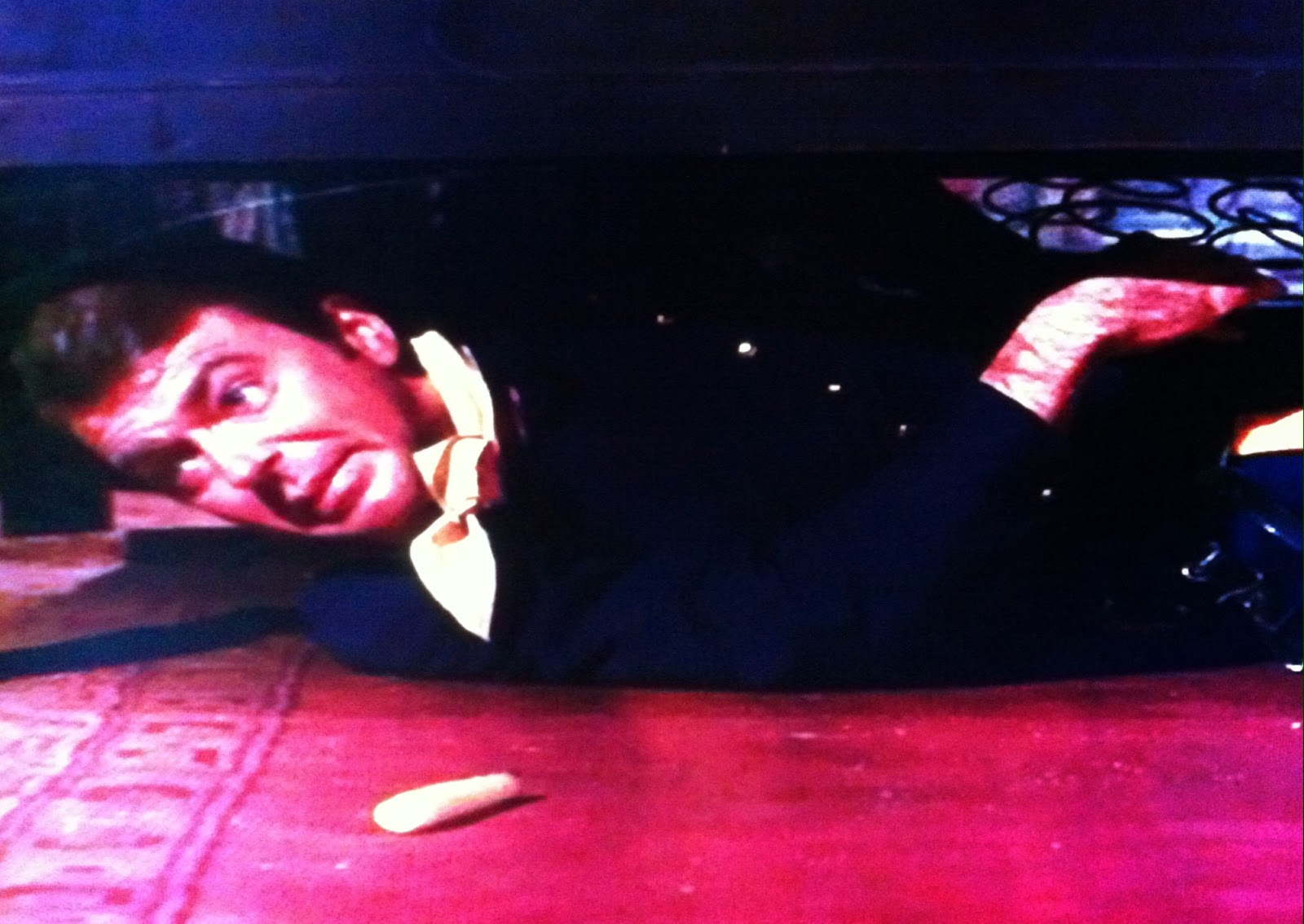 And Agarn discovers he's suddenly alone in the house. Once upstairs, the Captain finds the bedroom---and a live chicken. Still no sign of Jane, but Parmenter is finally the first of the three to encounter an actual person. That's the good news. The bad news: it's a sleeping Count Sforza.