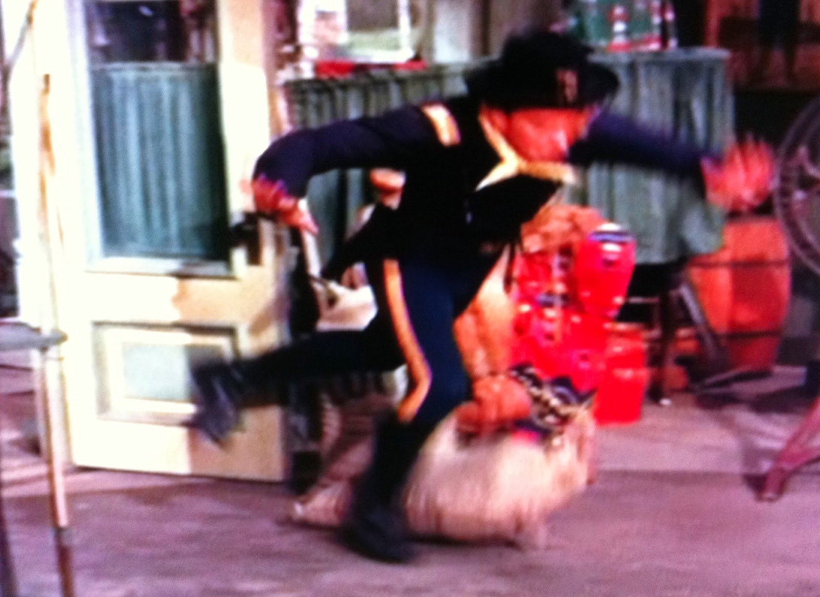 Price was very familiar to ABC's Thursday night viewers in 1966-67, having already guested on F TROOP's lead-in BATMAN as arch-villain Egghead just four months earlier. Egghead's accomplice? None other than Edward Everett Horton, as Screaming Chicken: a winking nod to Horton's hilarious recurring role as Hekawi medicine man Roaring Chicken during F TROOP's infancy. F TROOP had already poked gentle fun at BATMAN in a memorable exchange during Bye, Bye Balloon (the season's third episode). Too bad O'Rourke and Agarn never had a batclimb cameo.