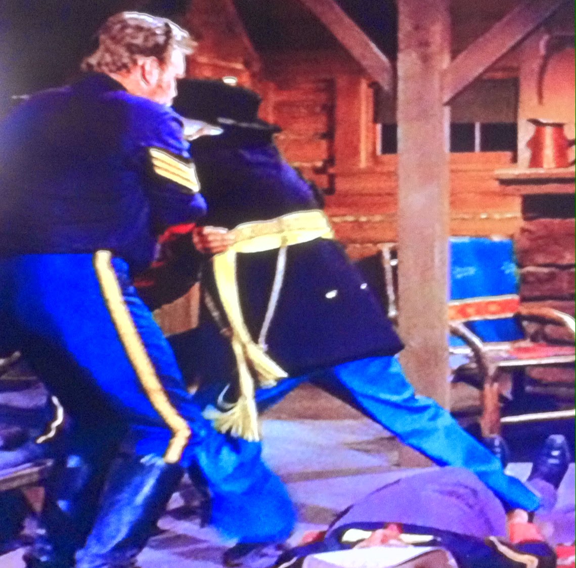Too bad we weren't shown the scene that Corporal Agarn describes. They fired the cannon to honor General Courage. As always, the tower fell--and would have fallen on the fort's namesake, only Wild Eagle pushed him out of the way, leading to his commission in the field.