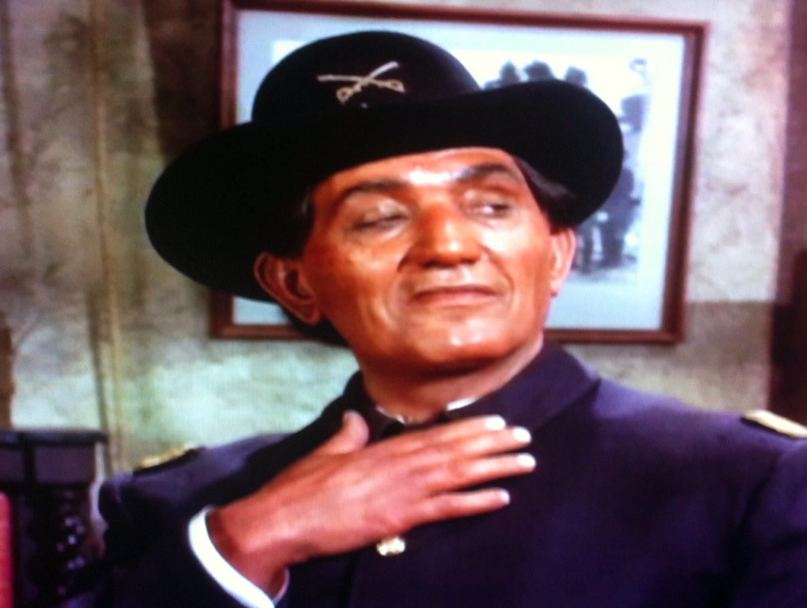 When he suggests that Wild Eagle is in the troop, plotting to take over the fort, O'Rourke, Agarn and Courage all laugh it off. with the General especially peeved at the suggestion that any such chicanery could go on in his presence. "I could spot an Indian the minute I seen one!"