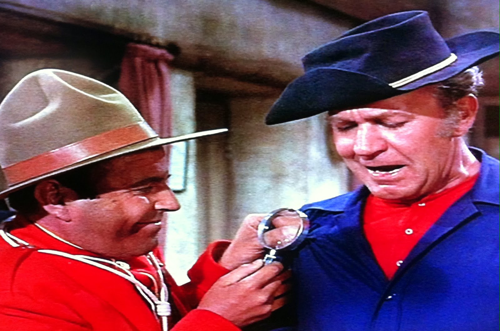 Who, by the way, is still singing to Wrangler Jane, who seems to be the only person at Fort Courage who actually likes him. The Mountie is so overjoyed to see that the troopers have captured Pierre that he actually stops singing. That joy, however, is short lived. O’Rourke and Parmenter are asking Sergeant Ramsden to sing Frere Jacques. O'Rourke helpfully gives the vocalist his key.