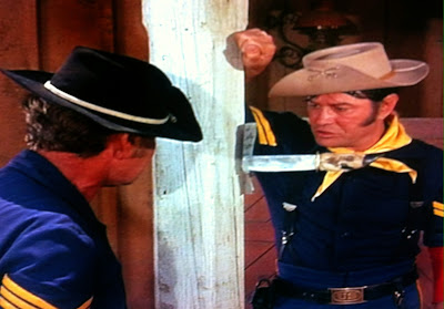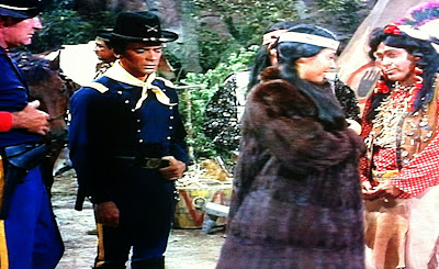 With Agarn restricted to the fort, it's up to O'Rourke to go up to the Hekawi camp solo and get Pierre's explanation. Meanwhile, Sgt. Ramsden, like every other officer who visits Fort Courage (regardless of country), tries to woo Wrangler Jane (Patterson) shortly after being introduced.