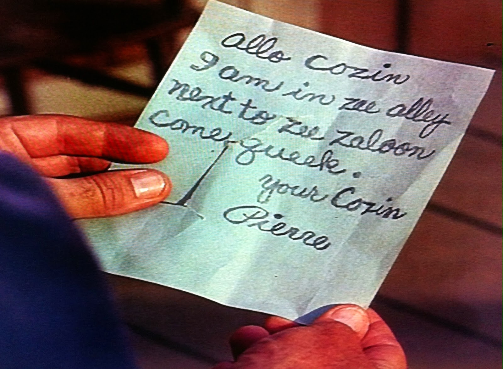 Lucky Pierre pleads innocence. Perhaps this is one Agarn relative who is as honest as the day is long. (The days are shorter in Mexico, per the Corporal.) Pierre does more than just deny involvement, though. He offers insight into who the real thief is: The Burglar of Banff.