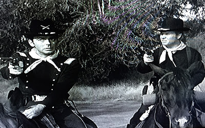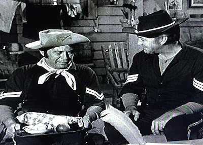 Not that the episode is devoid of surprises. The secondary plot provides the biggest: after three episodes of near-complete bumbling, the Captain displays a rare trait for him in a black and white F TROOP: competence. Hatching a plan to end the stage robberies, Parmenter correctly detects a pattern to them, accurately predicts the site of the Coltons' next heist, and actually apprehends the thieves successfully--without assistance from the best marksman available to him (Jane). True, his trademark clumsiness is still very much in evidence, but for once, Wilton saves the day and isn't oblivious to the fact.