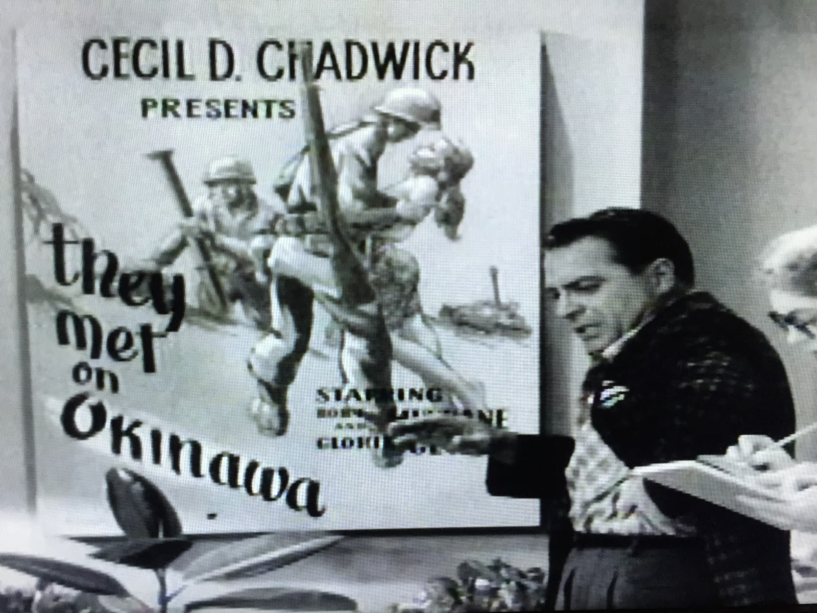 After a string of WW2 themed 'sexy' hits (like They Met in Okinawa), Chadwick's creative team sets its sights on the Battle of Kabuchi for Guns, Guts and Gals. The higher-ups at the Pentagon would prefer that Chadwick Productions seek their moneymakers elsewhere, but General Merritt admits that non-cooperation with Chadwick Productions is a losing battle: "Chadwick will make the picture anyway, and at least this way we'll know they're wearing United States uniforms!"