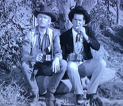 The contrivances to get to the denouement are much more noticeable than before. A really glaring example is Plumb's second lockbox procurement: after it has been established that he always has the driver hold it while he shoots the lock off, Rumsey takes the box after accosting Bret and Polly en route and sends them on their way. Why? So he can conveniently set off the bomb inside it seconds later without killing the show's stars. At least, that's the only explanation that fits--certainly no logical progression based on the story up to that point. (If he'd known that it would be Garner's finale when The Maverick Line was filmed in March 1960, Jack Warner might have signed off on that detonation in Bret's hands---but I digress.)
