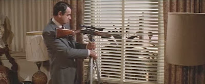 In adapting L’EMMERDEUR, Wilder and Diamond eliminated script elements making the hit man more physically imposing (Matthau just couldn't look as intimidating as Lino Ventura), changed the milquetoast’s profession from shirt salesman to network censor, and also revised the denouement. Sadly, there’s quite a bit of evidence that Wilder, at 74, had lost his fastball. There’s one scene satirizing hippies (in 1981?), an embarrassing scene in which the hotel’s cleaning lady doesn’t notice a bound and gagged Lemmon when she comes in to clean up, and several lapses in logic. A few examples: Matthau’s character implausibly uses his real name when checking into the hotel (unless the target knows Matthau's alias), the police roadblock is remarkably easy for Kinski, Lemmon and Prentiss to get past, and most far-fetched of all, Lemmon suddenly becomes way more helpful than such a rigid, uptight guy possibly could at a key moment.